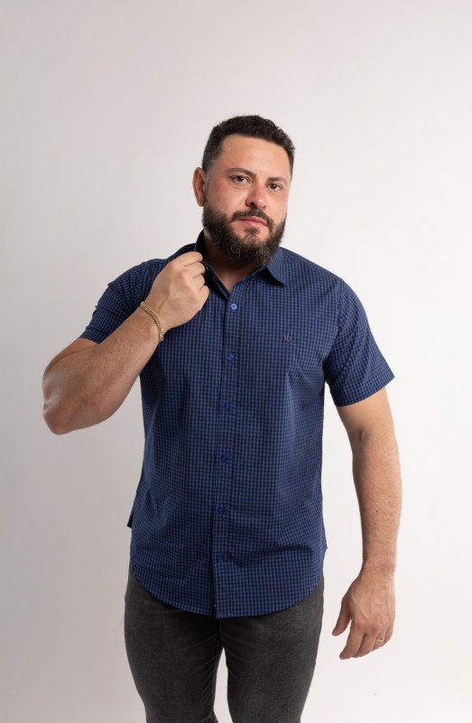 CAMISA M/CURTA MICRO XADREZ AZUL MARINHO